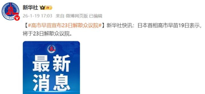1月23日,高市早苗突然宣布解散众议院,提前举行大选,投票时间定在2月8日。